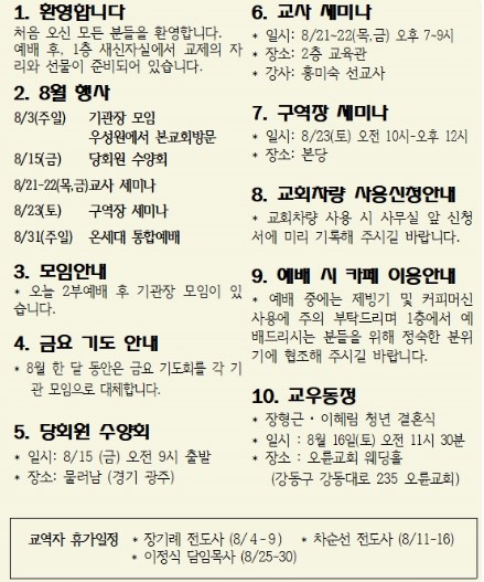 25년 8월 3일 교회소식