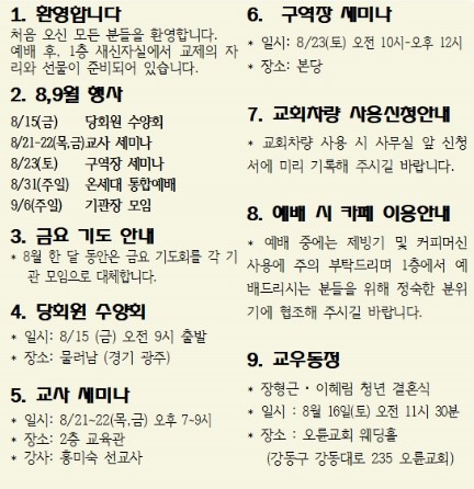 25년 8월 10일 교회소식