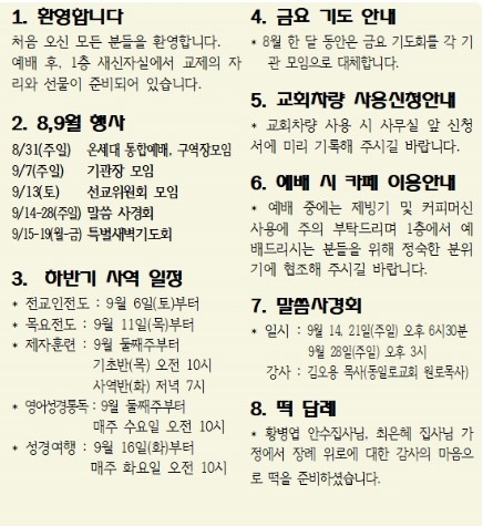 25년 8월 24일 교회소식