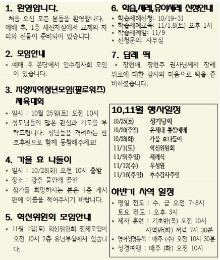 25년 10월 19일 교회소식