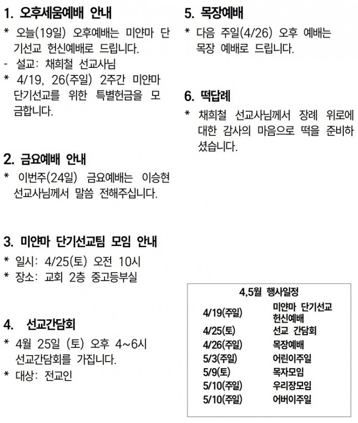 26년 4월 19일 교회소식