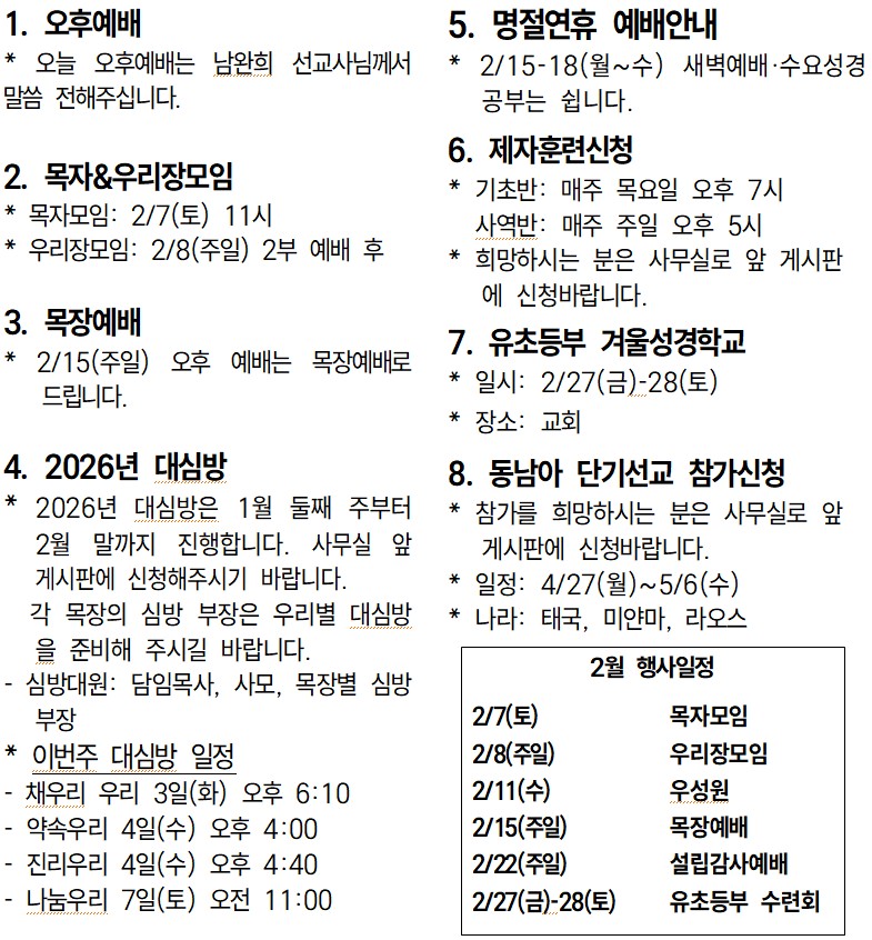 26년 2월 01일 교회소식