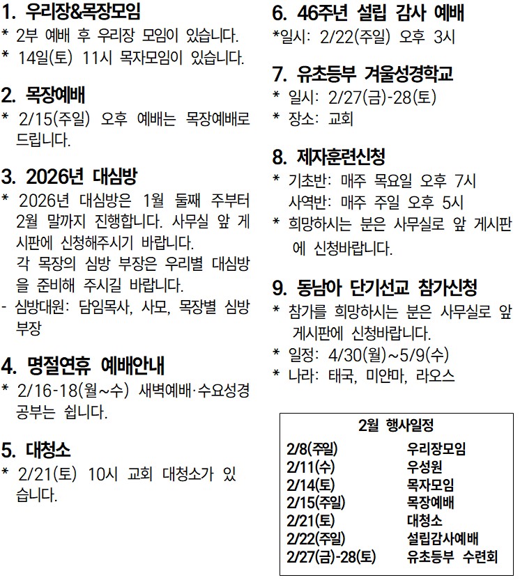 26년 2월 08일 교회소식