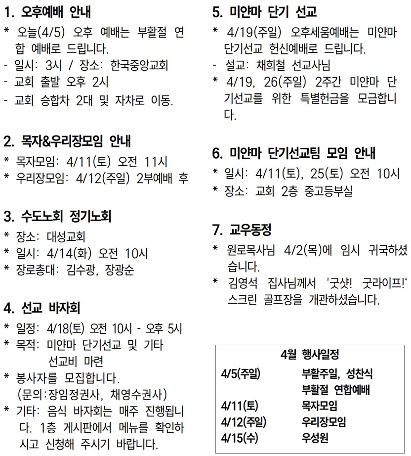 26년 4월 5일 교회소식