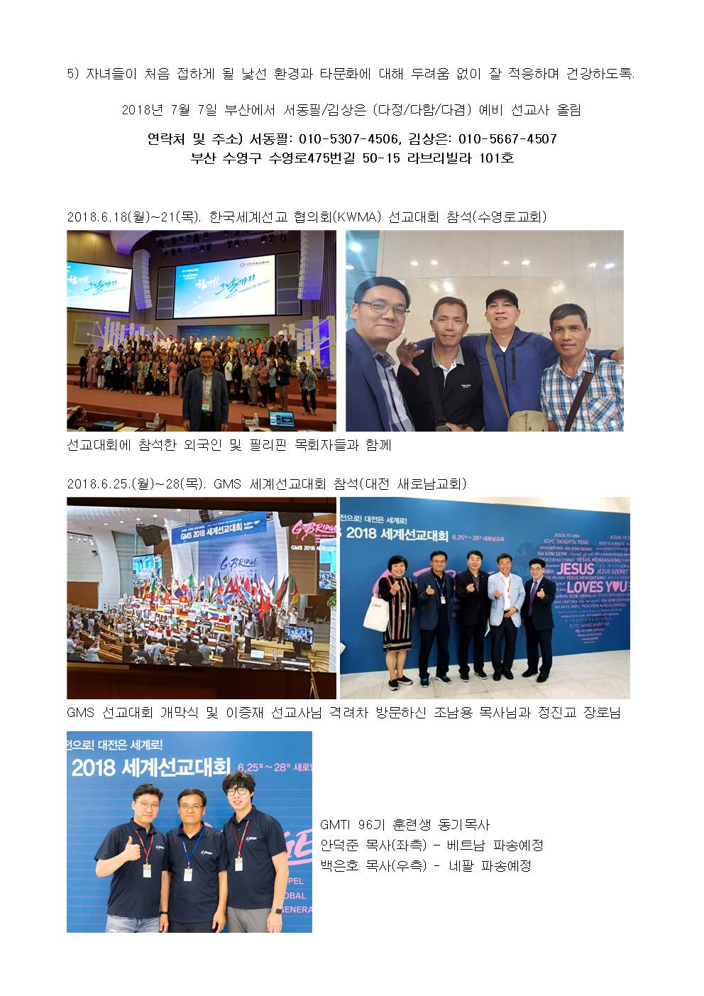 2018년 7월 7일 부산에서 서동필/김상은 (다정/다함/다겸) 예비 선교사 올림