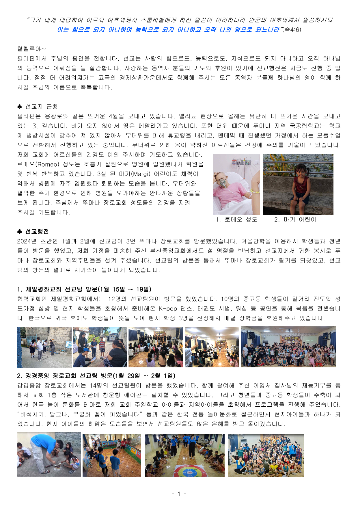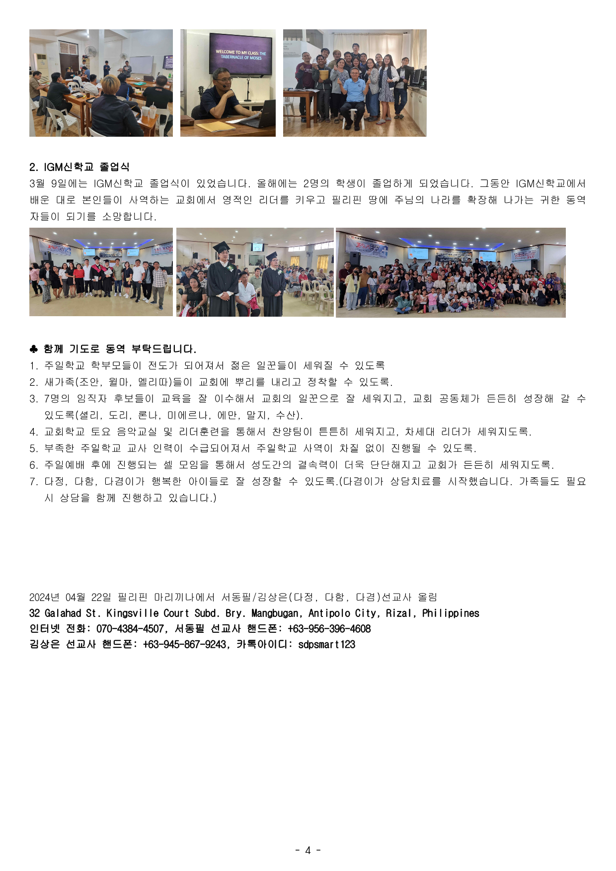 20240422 필리핀 서동필, 김상은 선교사 선교편지