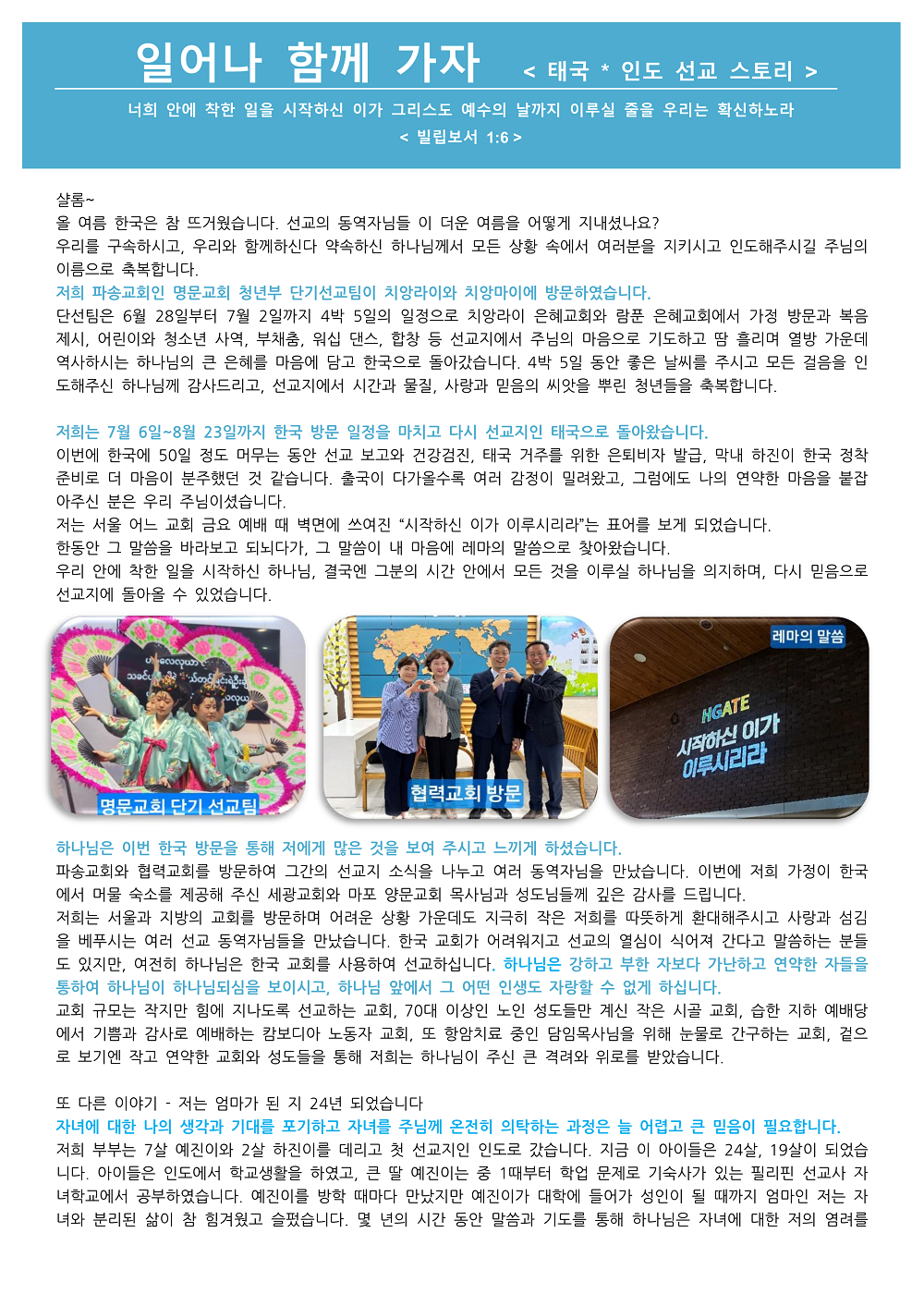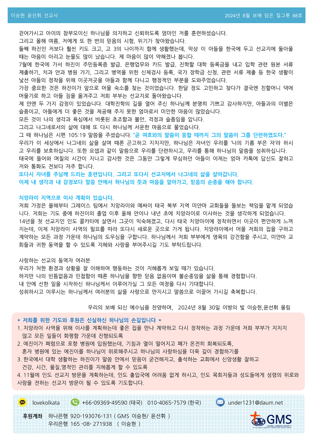 태국 이승현/윤선휘 선교사님 선교편지 2024.08.30.