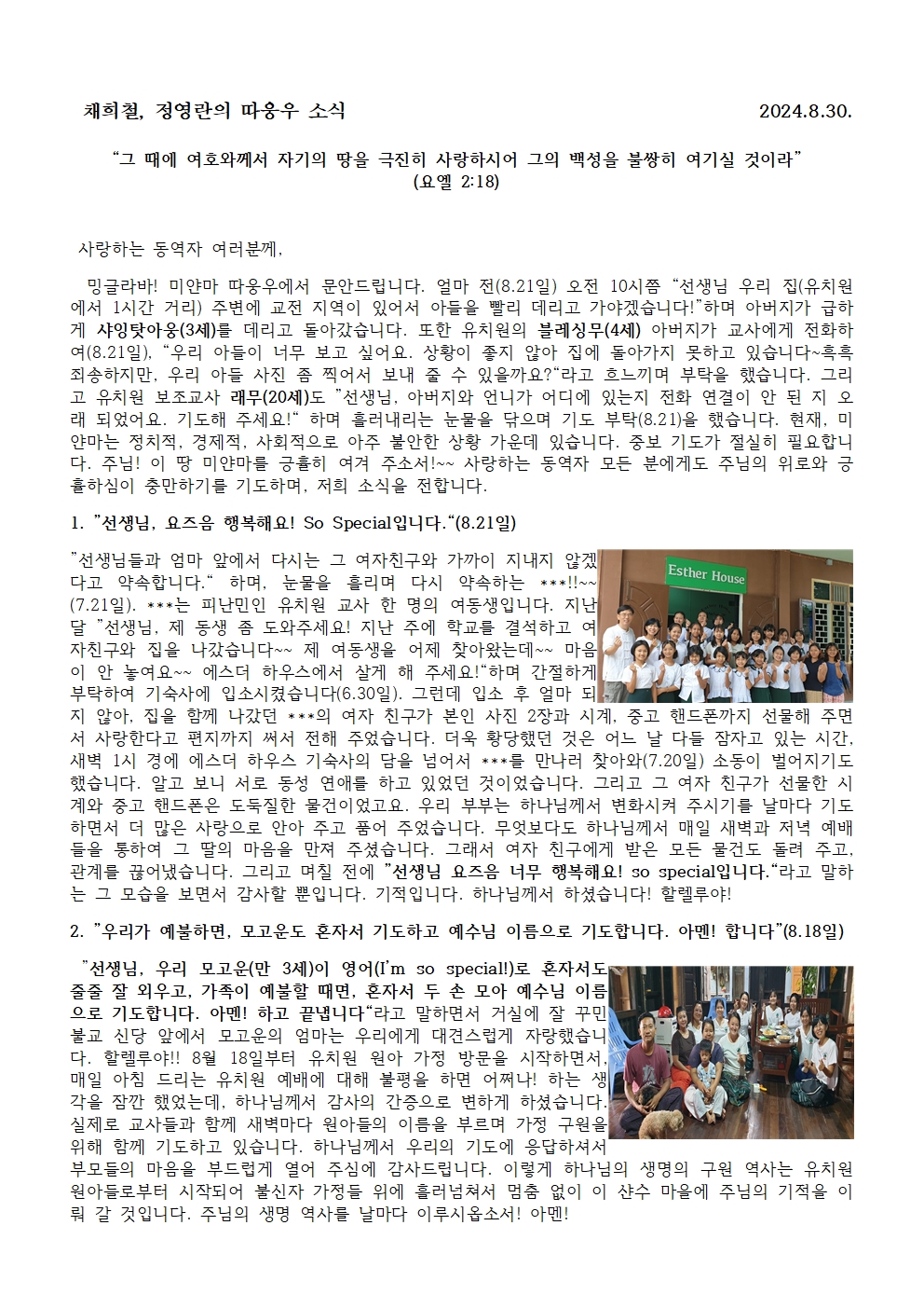 미얀마 채희철, 정영란 선교사님 따웅우 소식