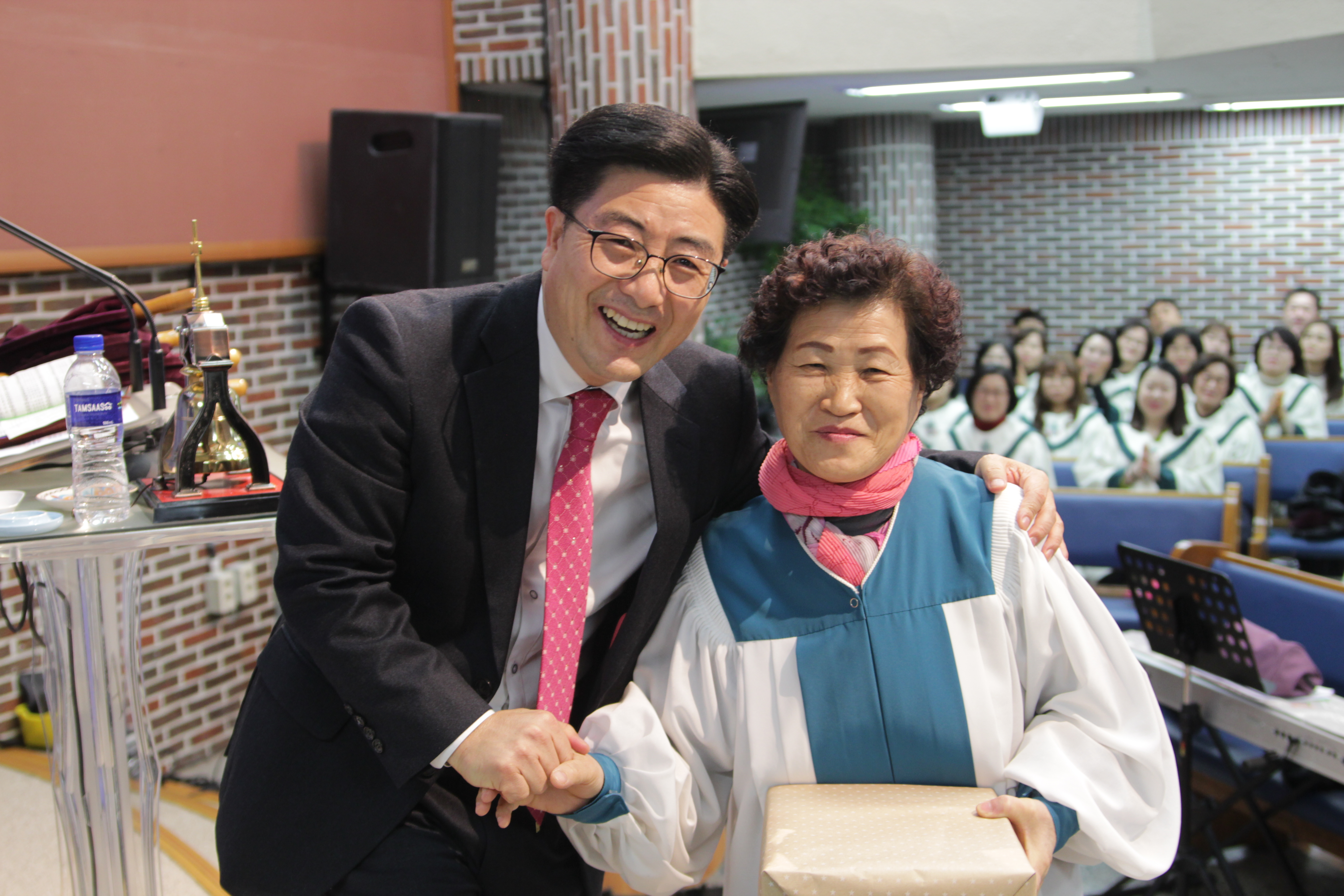 대표로 전도는 정금자 권사님이, 성경 읽기는 김영환 권사님이 시상하셨습니다.