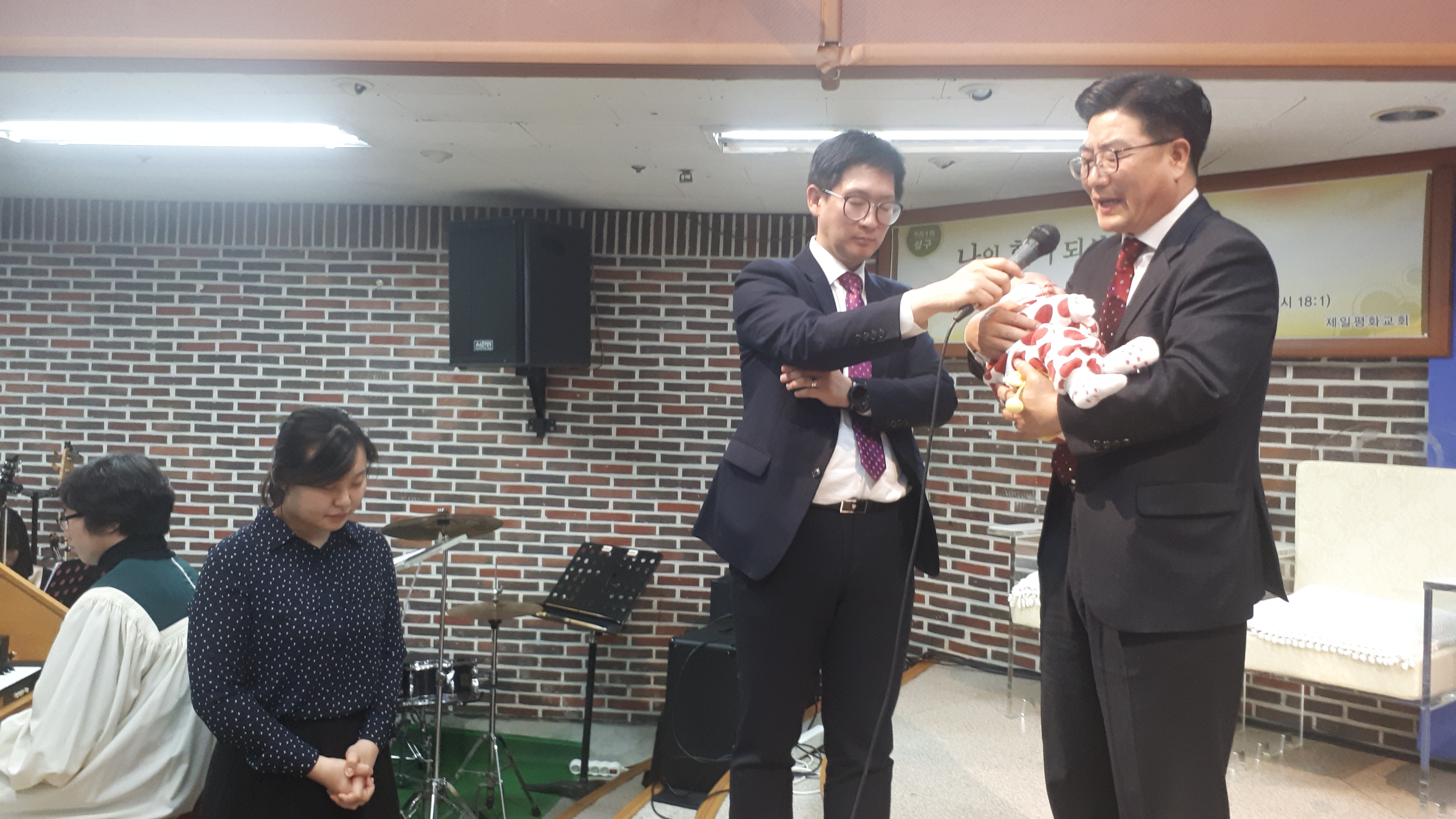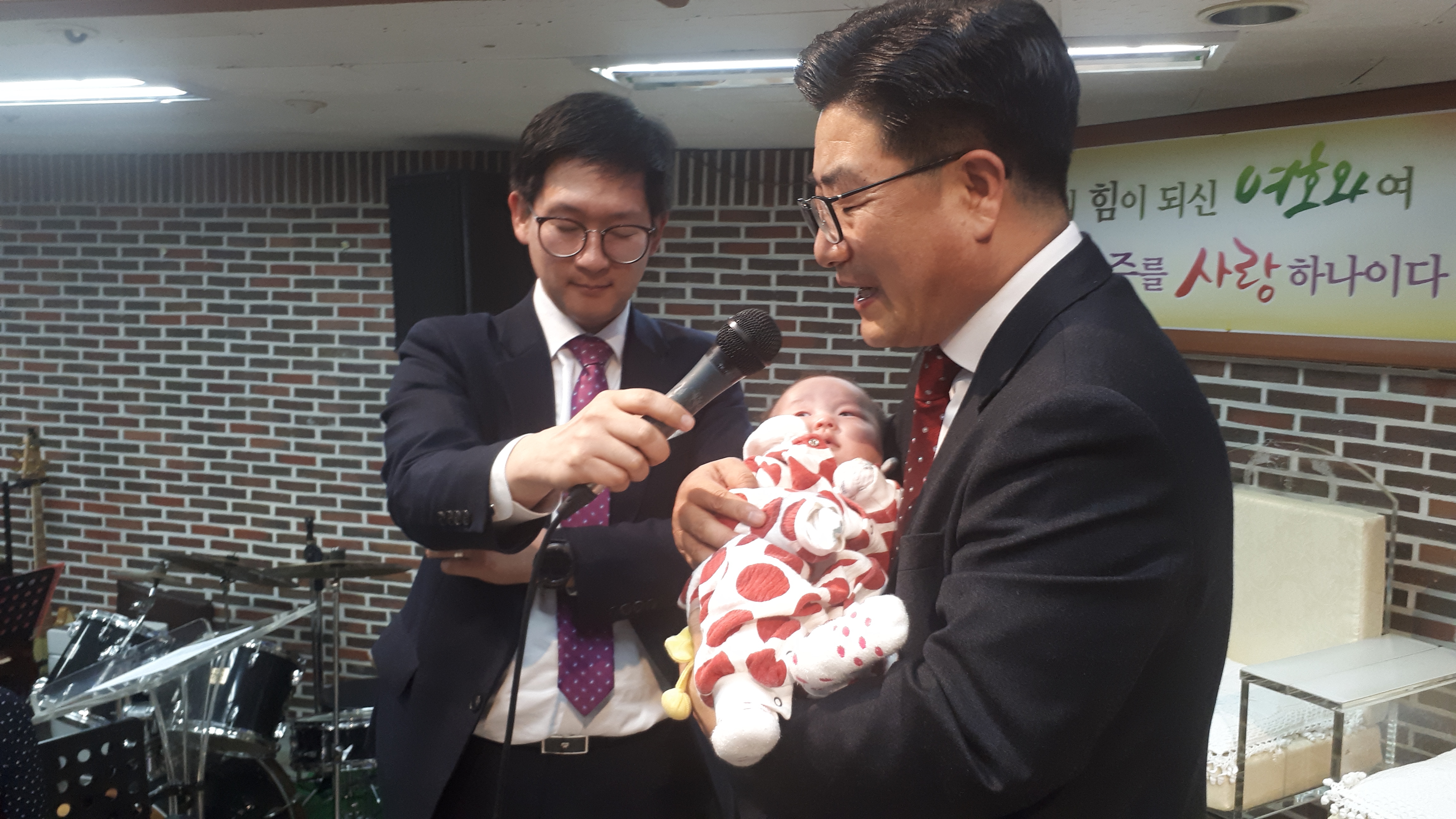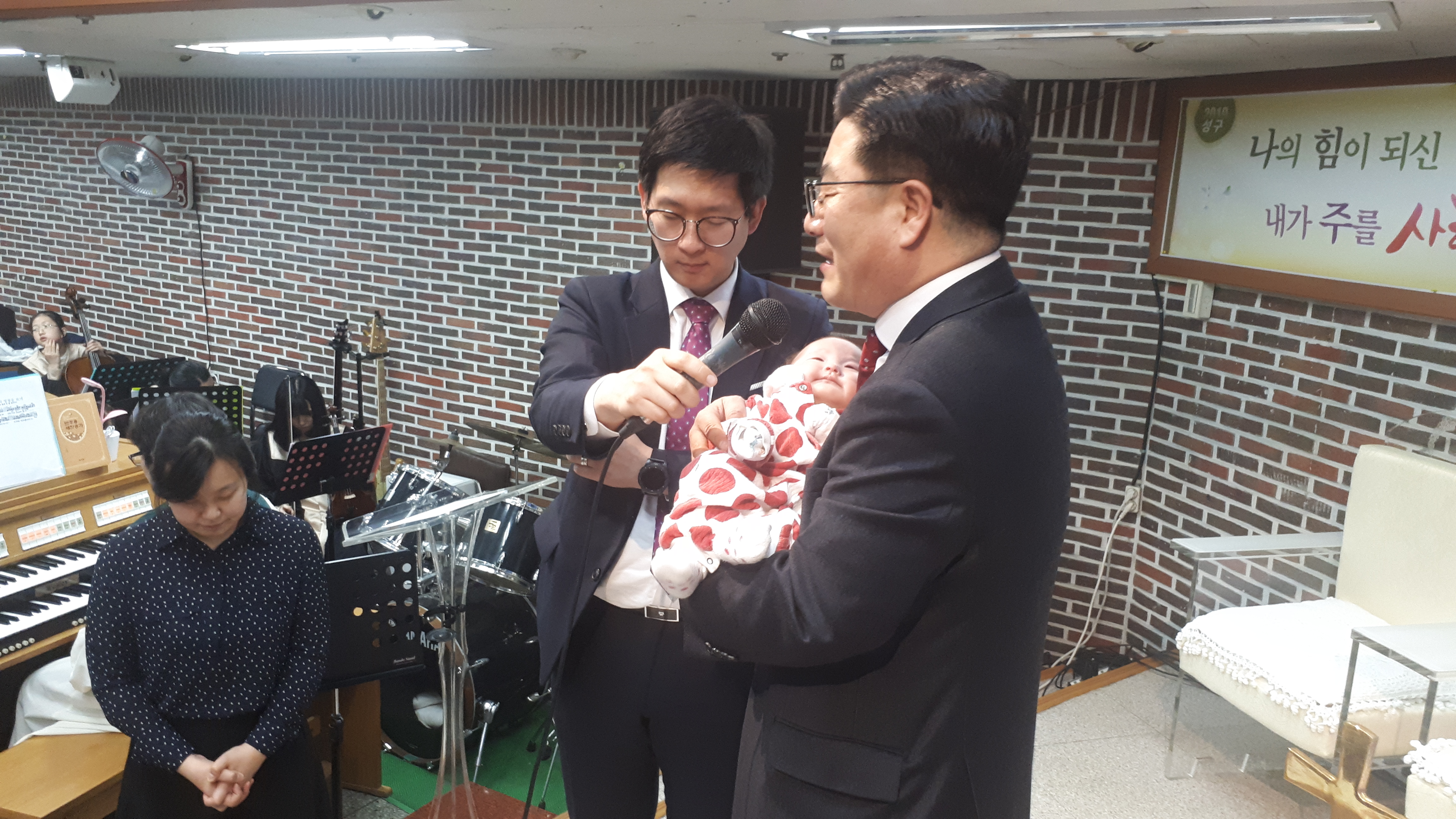 이성진 목사, 김은혜 사모 딸 이 레가 영아 첫 예배를 드렸습니다.