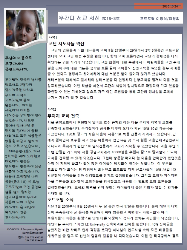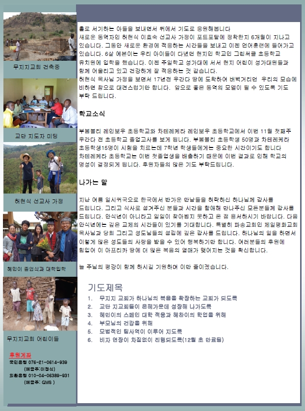 여러분들의 후원에 힘입어 이 아프리카 땅에 더 많은 복음의 열매가 맺어지는 것을 확신합니다.